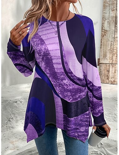 Per donna Tunica Grafico Astratto Elegante Vintage Moda Manica Lunga Girocollo Top lunghi Quotidiano Weekend Stampato Viola Arancione Verde Estate Primavera Autunno Inverno