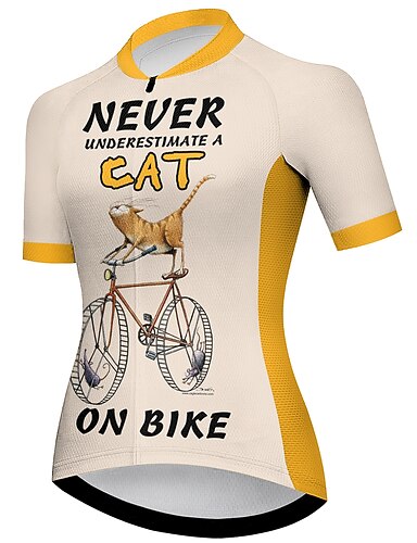 Per donna Maglia da Ciclismo Gatto Divertente Manica Corta Bicicletta Maglia Top con 3 tasche posteriori Mountain Bike MTB Ciclismo su strada Asciugatura Rapida Strisce Riflettenti Tasca Posteriore