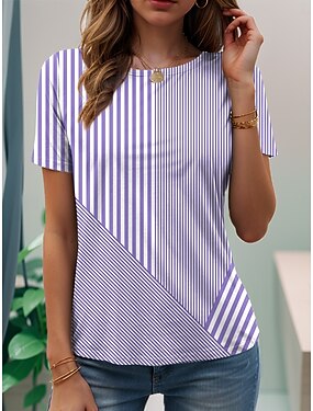 Per donna Top a maglia con texture Maglietta Blocco di colore Ombre Grafico Geometria Elegante Classico Manica Corta Girocollo Henley Top lunghi Quotidiano Sportivo Viola Arancione Verde Estate