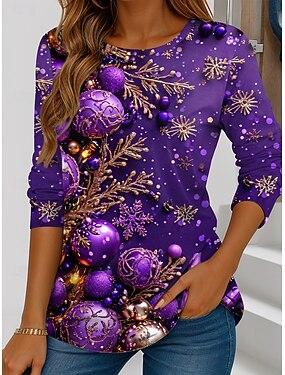 T-shirt da Donna Carnival Grafica Geometrica Vintage Elegante Classica Maniche Lunghe Collo Giro Regular Tops Stampa Quotidiana Viola Primavera Autunno
