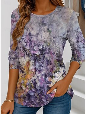 Per donna Maglietta Stampato Ombre Floreale Grafico Vintage Elegante Classico Manica Lunga Girocollo Top Regolari Quotidiano Blu Viola Arcobaleno Primavera Autunno Inverno