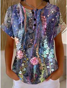 Per donna Camicia Maglietta Stampato Fiori Elegante Moda Moderno Manica Corta Girocollo Top Regolari Quotidiano Weekend Blu Rosso Viola Arancione Verde Estate