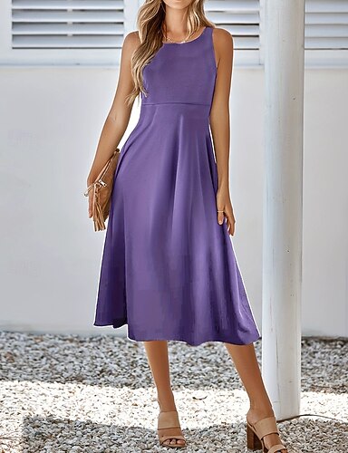 Per donna Abito Midi Abito nero Vestito Casual Elegante Moda Moderno Quotidiano All'aperto Uscire Vestibilità regolare Semplice Senza Maniche Girocollo Blu Nero Rosa Verde militare Estate Primavera