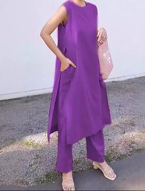 tuta da donna casual senza maniche con scollo a U in finto cotone e lino per uscire nel weekend vestibilità ampia rosa azzurro polvere viola estate