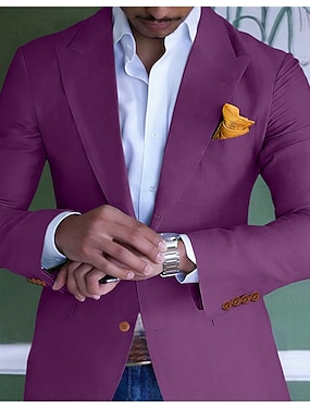 Per uomo Blazer di Lino Giacca Sportiva Collare di chiusura Moda Casual Tinta unita Blu Viola Verde Vestibilità su misura Monopetto Due Bottoni
