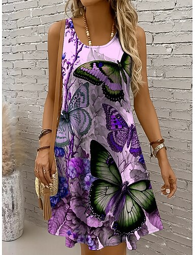 Per donna Mini Abito Vestito Casual Vestito Estivo Abito a trapezio Abito a spalle scoperte Vacanza Casual Ferie Spiaggia Vestibilità regolare Ombre Grafico Farfalla Senza Maniche Girocollo Scollo