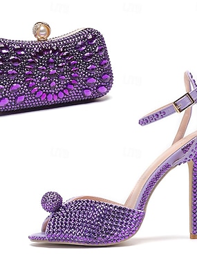 sandali da donna con tacco alto in raso viola e fibbia di strass &eleganti tacchi a spillo con cinturino alla caviglia e punta aperta per cocktail party &eventi serali