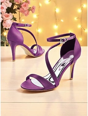 sandali da donna con tacco medio e cinturino in raso viola – elegante design a punta aperta con cinturino con fibbia per matrimoni, feste serali e occasioni speciali