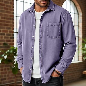 Per uomo Camicia Camicia casual Camicia con Bottoni Camicia cargo Camicia lavata con acido Nero Verde chiaro Vino Blu Viola Manica Lunga Semplice Bavero Casuale Quotidiano Puro Abbigliamento Vintage