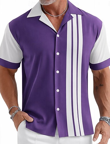 Per uomo Geometrico A righe Colore sfumato Camicia Camicia con Bottoni Camicia con collo camp Manica Corta Business Casual Abbigliamento casual alla moda Vacanza Estate Primavera Colletto cubano