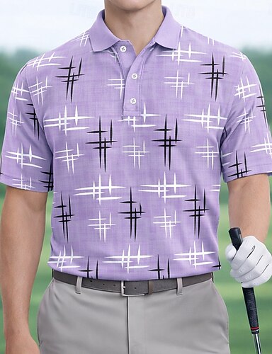 Per uomo Geometrico Golf Polo Sportivi Manica Corta Magliette polo Camicie con Colletto Casual Athleisure Bottoni Tessuto retato traspirante Primavera & Estate Blu Viola Verde