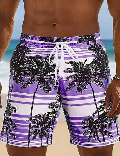 Per uomo Albero di Cocco A righe Piante Tropicali Costumi da bagno Costumi da bagno Pantaloncini da bagno Pantaloncini da Surf Misura del girovita medio Hawaiano Vacanza al Mare Tasche Laterali
