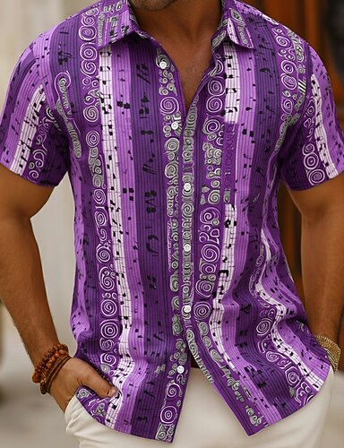 Per uomo Note Musicali Camicia Camicia con Bottoni Manica Corta Vintage Retrò Quotidiano Festival Musicale Estate Primavera Collo ripiegato Stampa 3D camicie con colletto Blu Viola Arancione Verde