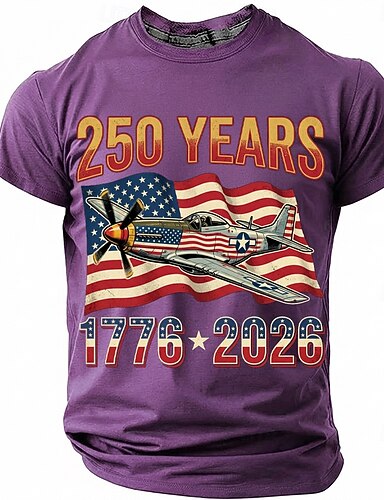 250° anniversario 4 luglio 2026 maglietta da uomo 250 anni 1776-2026 aereo da caccia P-51 Mustang grafica manica corta girocollo patriottico bandiera USA aviazione regalo veterano abbigliamento