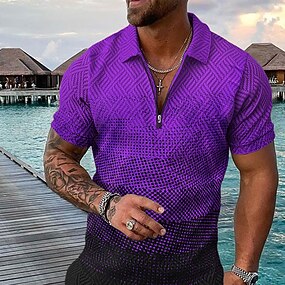 Per uomo Geometrico Polo Hawaiane Maglia da golf Manica Corta Magliette polo Camicie con Colletto Casual Abbigliamento mare Abbigliamento da vacanza Abiti da festa Stampa 3D Polo con cerniera a un