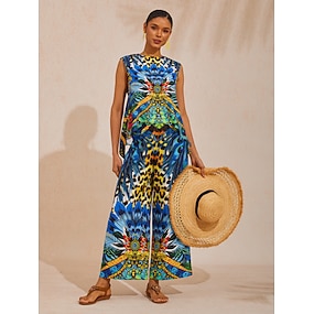 pantaloni da donna in raso a gamba larga maxi larghi bohémien casual da vacanza quotidiani primavera estate autunno
