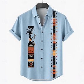 Per uomo Camicia di lino Camicia Estiva Abbigliamento da spiaggia Camicia con Bottoni Tribale Vacanza Casuale Blu Verde Cachi Manica Corta Collo ripiegato Estate Primavera Abbigliamento