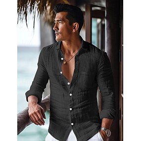 45% Lino Per uomo Camicia camicia di lino Camicia con bottoni Camicia da spiaggia Nero Bianco Cachi Manica lunga Liscio Bavero Primavera & Autunno Esterno Giornaliero Abbigliamento