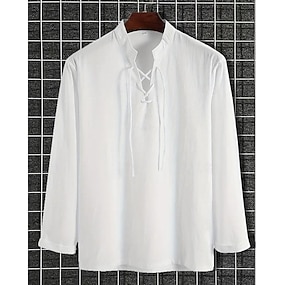 Per uomo Camicia Maglietta informale Camicia di cotone Liscio Hawaiano Per eventi Nero Bianco Cachi Manica lunga A fascia Primavera & Autunno Abbigliamento Lacci
