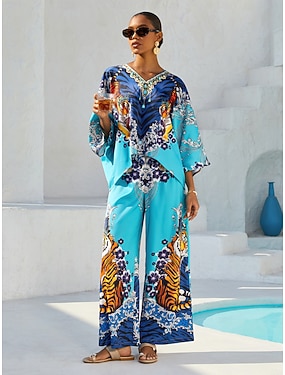 Per donna Set di Pantaloni Mezza Manica A farfalla Girocollo Floreale Grafico Elegante Vacanza Casuale Quotidiano Blu Rosa Viola Primavera & Estate