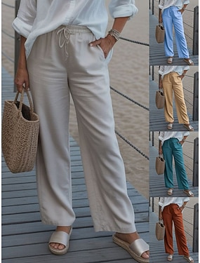 Per donna Finto cotone e lino Pantaloni casual Pantaloni Estivi Dritto Vacanza Essenziale Casual Lunghezza intera Vita Alta Semplice Tasca Comodo Morbido Confortevole Micro-elastico Quotidiano