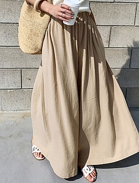 Per donna Misto cotone Finto cotone e lino Gamba larga Chinos Vacanza Streetwear Essenziale Lunghezza intera Vita media Semplice Tasca Elastico in vita Comodo Comodità Traspirante Micro-elastico
