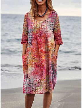 Per donna Abito maxi Finto cotone e lino Abito a Tubino Vestito Casual Vestito a ruota Essenziale Casual Quotidiano Vacanza Vestibilità regolare Semplice Manica 3/4 Girocollo Giallo Rosa Estate