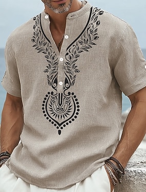 Per uomo Etnico Camicia Camicia di lino Maglia Henley Manica Corta Casual Tribale Quotidiano Vacanza Estate Primavera Collo alla coreana Stampato Blu Verde Cachi
