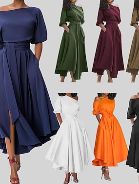 Per donna Abito Midi Tubino Abito a trapezio Abito aderente e svasato Abito a spalle scoperte Festa Casual Boho Abito Invernale Quotidiano Vestibilità regolare Semplice Mezza Manica Senza Spalle Blu
