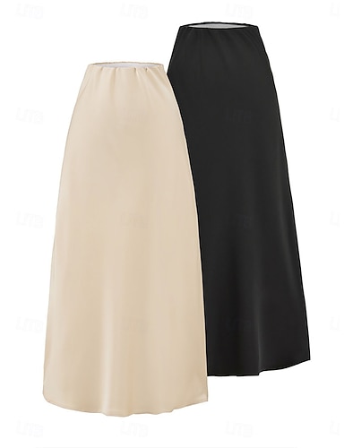 Per donna Gonne in raso Elegante Vintage Moda Casual Midi Vita Alta Gonne Semplice Arricciato Patchwork Inelastico Quotidiano Ufficio / Carriera Nero Mandorla Estate Raso Poliestere