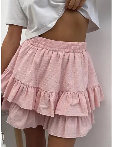 Per donna Gonna da vacanza Moda Casual Mini Vita Alta Gonne Semplice Coulisse Volant Elasticizzato Quotidiano Streetwear Nero Bianco Vino Blu marino Estate Poliestere