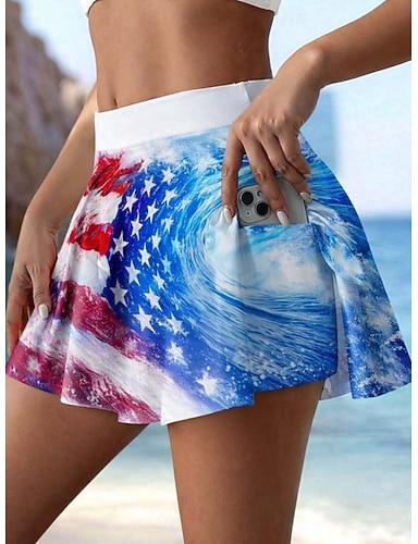Gonna patriottica per il giorno dell'indipendenza, gonna da vacanza da donna, gonna da tennis, moda hawaiana, abbigliamento da spiaggia, pantaloni da bagno, minigonne a vita alta, grafiche, elastiche,