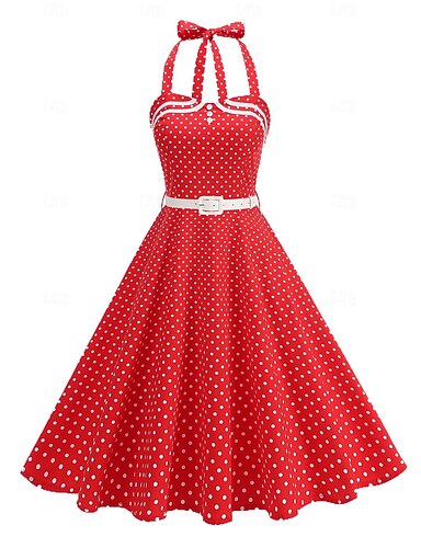 Anni 1950 Hepburn Retrò Vintage Midi Abito a Linea Abito Swing Vestito Svasato Senza maniche A Pois Linea ad A Costume Per donna Carnevale San Valentino Mascherata Vacanza Abbigliamento Quotidiano