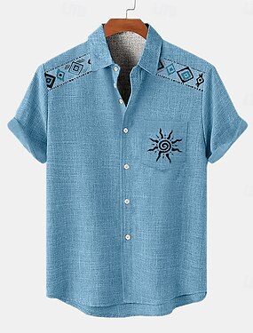 Per uomo Camicia camicia di lino camicie retrò Camicia d'epoca Camicia etnica Tribale Giornaliero Rosa Blu Kaki Manica corta Collo ripiegabile Estate Primavera Abbigliamento