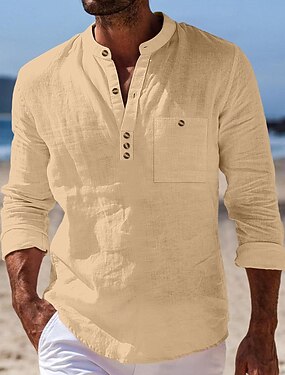 Per uomo Camicia Camicia di lino Camicia popover Camicia Estiva Abbigliamento da spiaggia Semplice Vacanza Casual Giallo Chiaro Nero Bianco Blu marino Manica Lunga Henley Estate Primavera