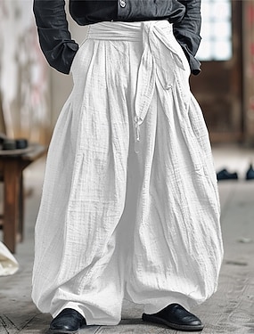 Per uomo Pantaloni di Lino Pantaloni Pantaloni Estivi Pantaloni Larghi Pantaloni da Spiaggia Elastico in vita Semplice Comodità Traspirante Vacanza Quotidiano Ferie Vintage Boho Bianco Blu marino