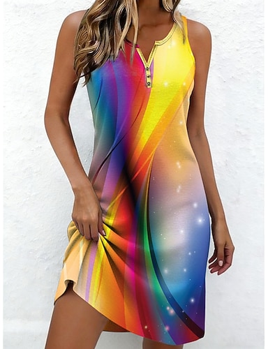 Per donna Mini Abito Abito a Tubino Vestito Estivo Abito Estivo Abito a spalle scoperte Vacanza Casual Quotidiano Ferie Uscire Vestibilità regolare Ombre Grafico Geometrico Senza Maniche Scollo a V