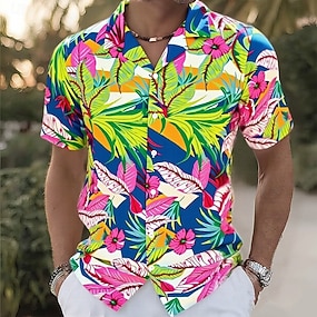 Per uomo Pappagallo Camicia Camicia hawaiana Camicia da campo Manica corta Camicia Collo ripiegabile Hawaiano Originale Informale Esterno Strada Informale Giallo Verde chiaro Rosa Stampa 3D S M L
