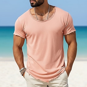 Per uomo T-shirt tipo lino Maniche Corte Girocollo Estate Semplice Moda Designer Essenziale Morbido Vacanza Streetwear Casual Quotidiano Rosa Blu chiaro Beige Maglietta Top per Uomo