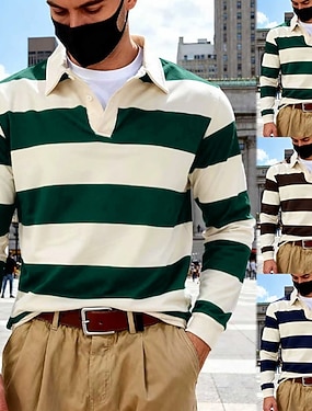 Per uomo Polo Polo da Rugby Casuale Streetwear Bavero Manica Lunga Essenziale Moderno Strisce orizzontali Bottoni Primavera Autunno Vestibilità regolare Blu marino Verde Caffè Polo