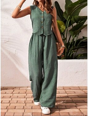 Set in Lino Sintetico Simile al Cotone per Donna Senza Maniche Collo a V Semplice Elegante Moda Streetwear Casual Quotidiano Esterno Nero Verde Militare Khaki Estate Vestibilità Regolare