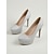 Décolleté da donna con plateau e tacco alto glitterato, eleganti scarpe da invitata a matrimoni in giardino. &celebrazioni all'aperto