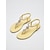 Sandali piatti da donna con cinturino a T color oro metallizzato - eleganti sandali infradito in similpelle con cinturino regolabile alla caviglia per resort di lusso all'aperto &vacanze al mare