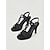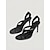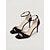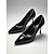 Décolleté da donna nere in vernice con punta affusolata e cinturino alla caviglia, modello a stiletto, ideali per cocktail party e matrimoni. &eventi serali