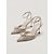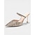 Sandali da donna a punta con strass e punta affusolata in rete - sandali con tacco basso a blocco color oro champagne per cocktail party &matrimonio estivo