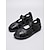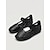 Sandali con plateau da donna comodi in camoscio nero - ampi cinturini traforati, ideali per vacanze al mare e resort all'aperto. &viaggi estivi
