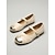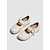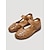 Ballerine da donna color mandorla con ricami floreali, cinturino regolabile, scarpe casual in pelle cucite a mano, calzature comode con suola morbida per viaggi, passeggiate e gite in giardino.
