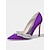 Décolleté da donna viola in raso con punta affusolata, scarpe con tacco a spillo decorate con strass per cocktail party e matrimoni. &eventi serali