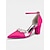 Décolleté rosa in raso da donna con tacco basso, cinturino alla caviglia con strass e punta affusolata, perfette per cocktail party e matrimoni. &eventi serali
