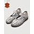 Ballerine da donna grigie in vera pelle di vacchetta con motivo floreale intagliato, cinturino regolabile, scarpe casual cucite a mano, calzature comode con suola morbida per l'uso quotidiano, viaggi,